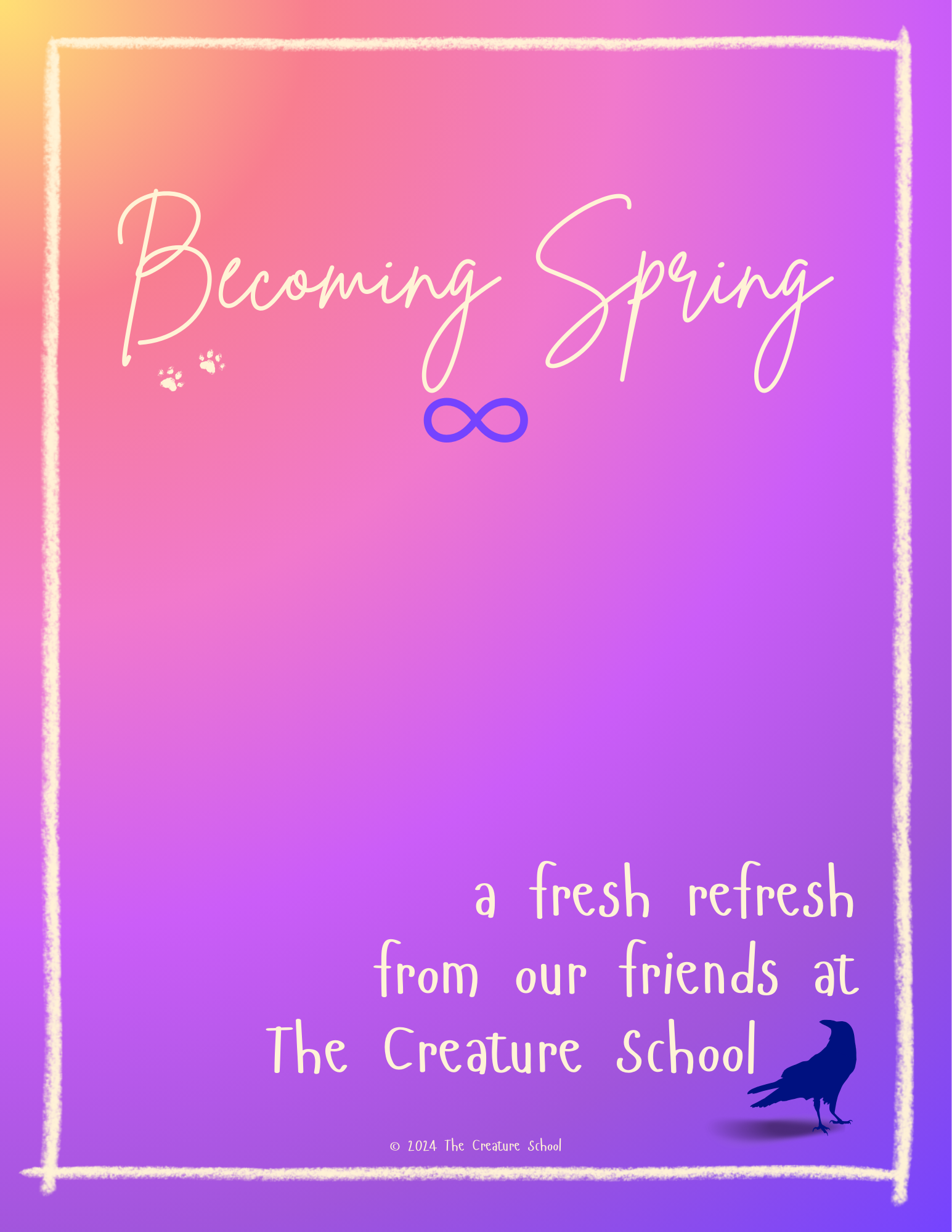 A workbook designed to get you into your creature body and discover new ways to relate to the spring season. In this season’s workbook, you’ll learn from Sprout, Bee, & Wind!